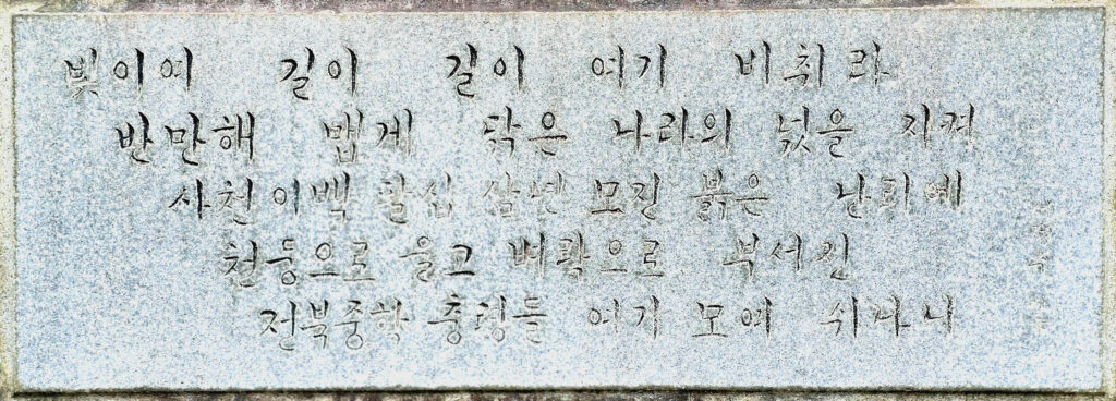 반만해 맵게 닦은 나라의 넋을 지켜