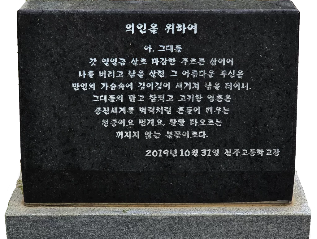그 이름 석자 여기 다시 새긴다
